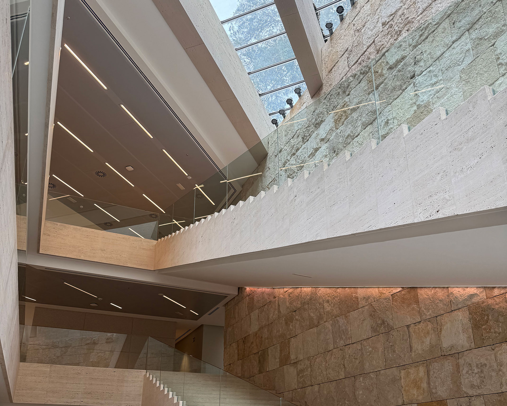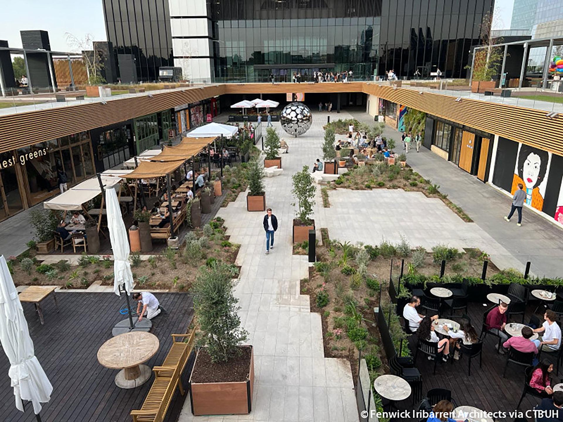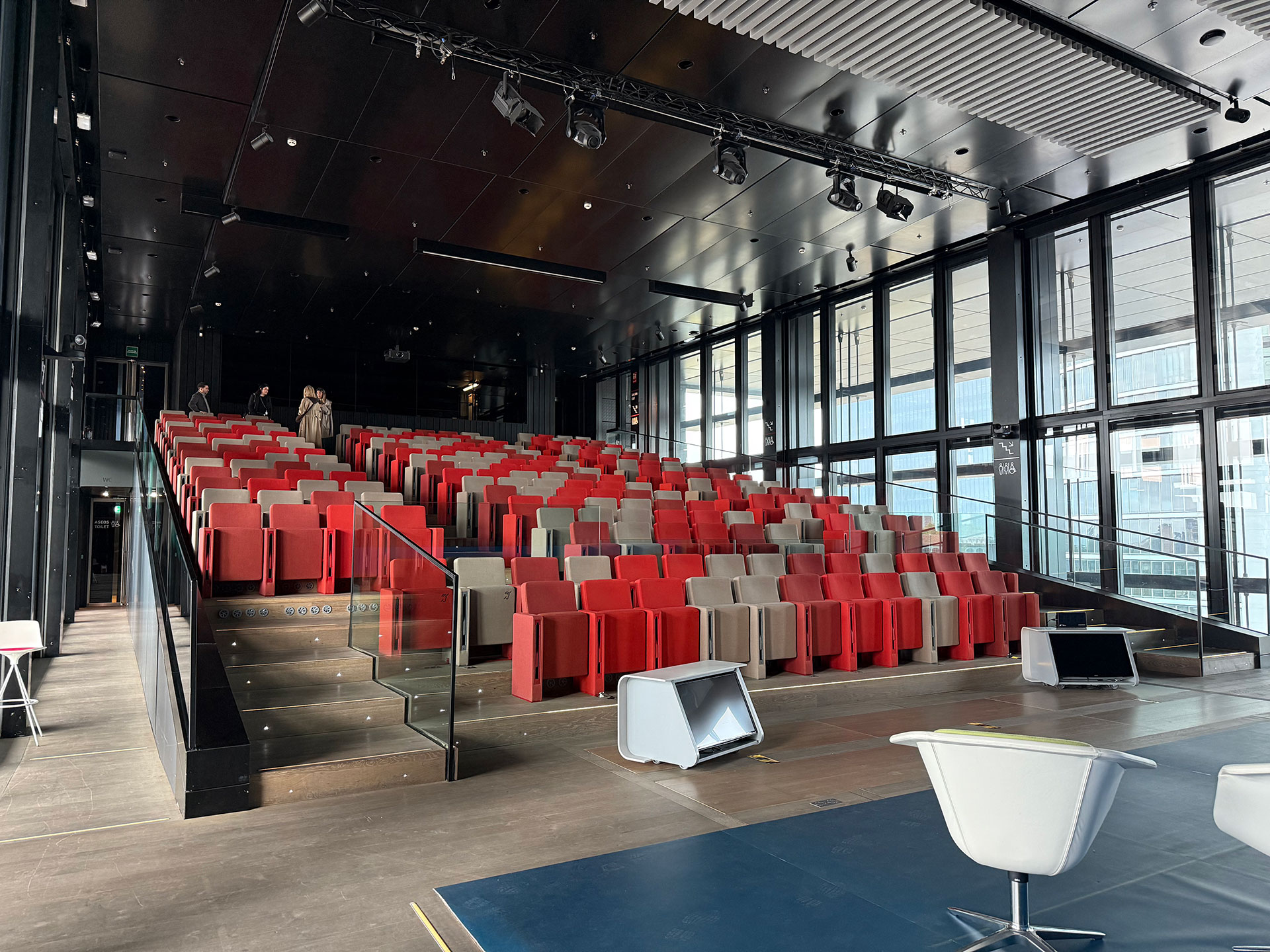 After breakfast, attendees will walk to the iconic Torre Foster for core programming in the building’s auditorium. At 248 meters tall, the building has a distinctive high-arch composition of office floors framed by service cores and a dramatic glazed atrium at street level. The auditorium is suspended just above the lobby atrium.